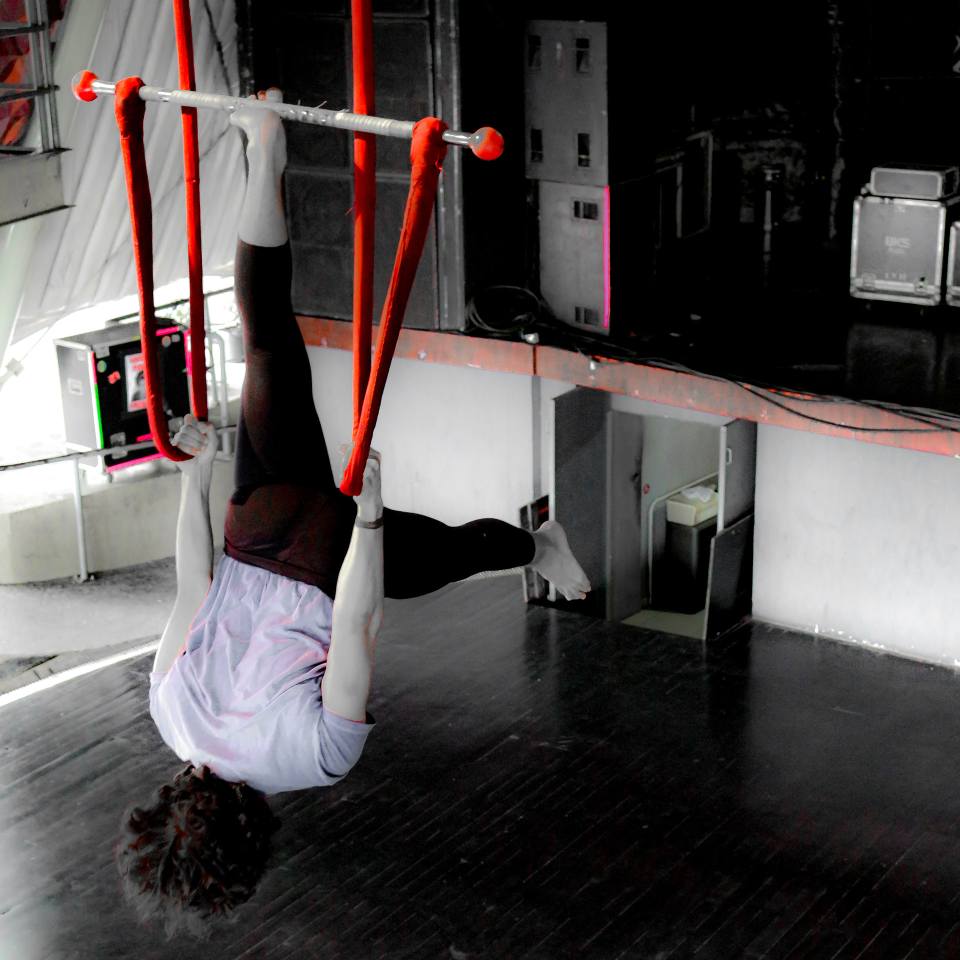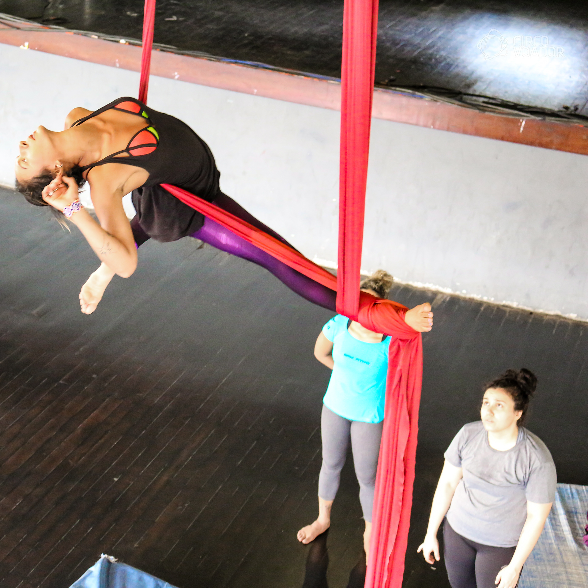 Processo de linguagem criativa e acrobacia aérea no Circo Voador com a Coach Amaralina Fagundes Ferreira. Dia a dia com os alunos, ensaios e apresentações internas.